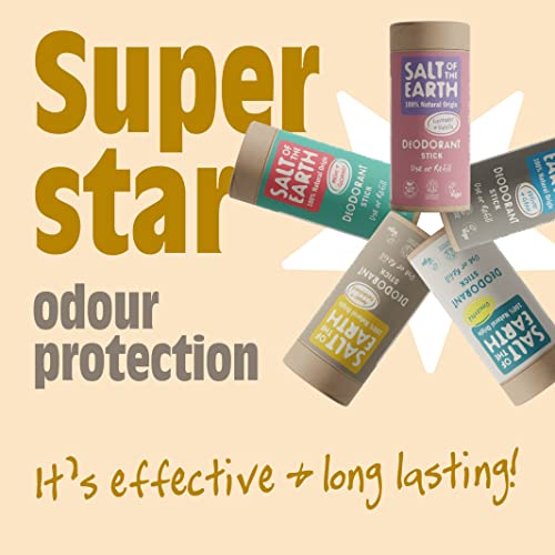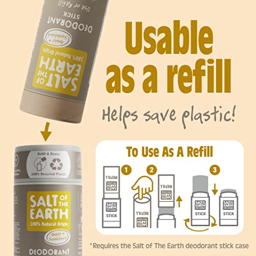 Salt of the Earth – Natural Deodorant Stick – 100% Natural Origin Ingredients, Aluminium Free, Vegan, Long Lasting Protection, Refillable, Made in The UK 84g (Amber & Sandalwood)