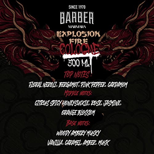 BARBER MARMARA Explosion Fire Limited Edition Eau de Cologne 500 ml Men’s Fragrance Water Glass Bottle Gift Packaging Men’s Perfume Aftershave Men Unisex Fragrance Cologne Barber 8% Fragrance Oil