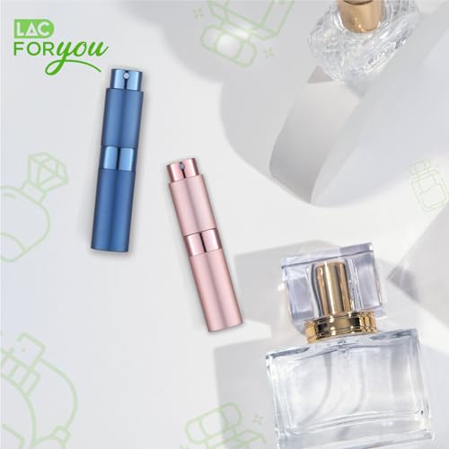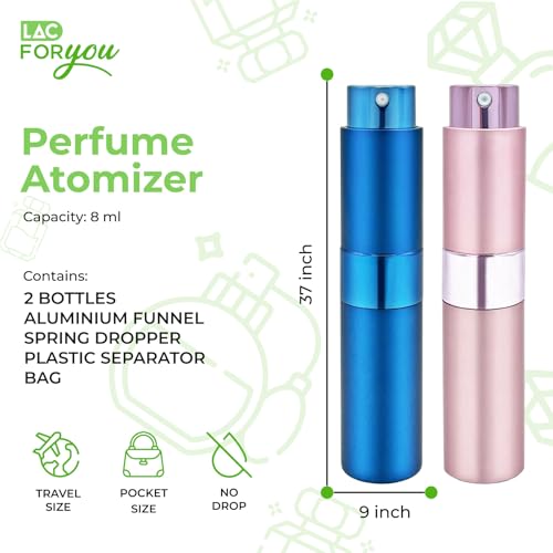 LAC FOR YOU 8ml 2 Perfume Atomisers Refillable, Portable Perfume Travel Bottle, Aftershave Spray Bottle for Handbag (Blue/Pink)