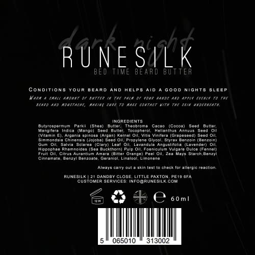 RUNESILK Dark Night Beard Butter – All-Natural and Vegan-Friendly Conditioning Handmade 50g