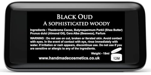 Solid Cologne For Men After Shave Aftershave balm Smoky Oud with Woody and Amber (Black Oud, 18ml) is a perfect portable fragrance solution, exuding a smoky oud aroma with deep woody and amber undertones. The compact metal tin ensures convenient application and makes it ideal for travel.