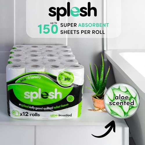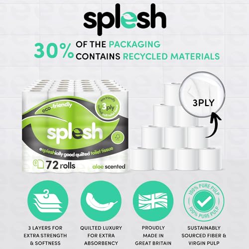 Splesh by Cusheen 3-ply Toilet Roll – Aloe Vera Fragrance (72 Pack) Soft, Quilted Bulk Toilet Rolls, Toilet Tissue and Loo Rolls â Eco-Friendly Toilet Paper Sustainably Crafted in The UK