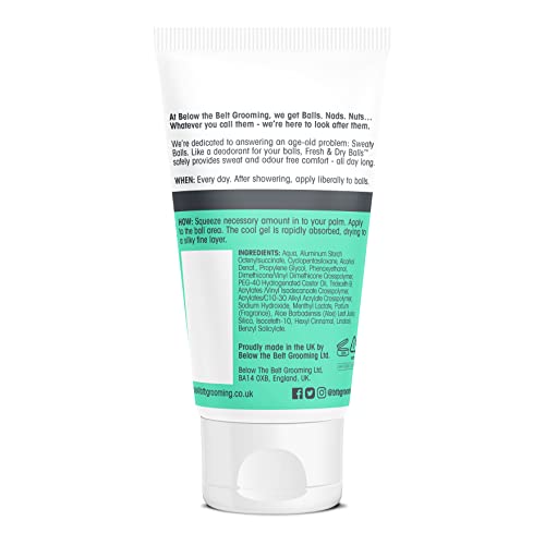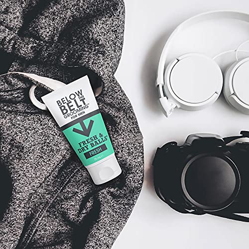 Below The Belt Grooming Fresh & Dry Ball, Intimate Deodorant and Anti Chafing Cream For Men, Protects against Sweat, Odour and Chafing, Fresh Scent 75ml