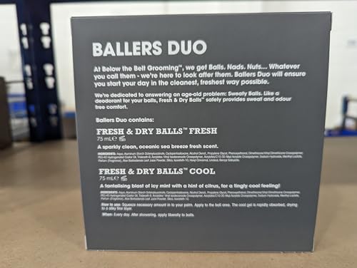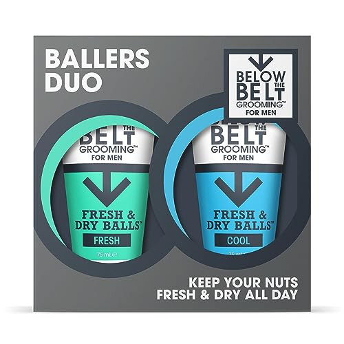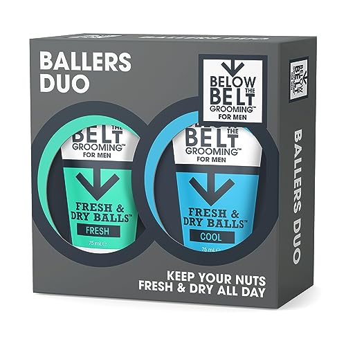 Below The Belt Mens Groin Deodorant, Anti-Chafing Cream for Men Ballers Duo Gift Set is specifically designed to keep you feeling fresh and comfortable all day long. This convenient set includes two unique variations of the product: the Cool fragrance for a refreshing, icy feel and the Active fragrance with a sporty, invigorating scent. Both formulations cater to men’s unique skin needs, making them ideal for daily use.