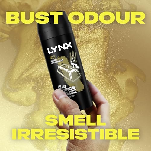 Discover the irresistible allure of Lynx Gold Bodyspray 150 ml. This dynamic body spray offers a rich and captivating fragrance blend that combines notes of oud wood and fresh vanilla for a sophisticated scent. Not only does it provide 48-hour odour protection, but it also revitalises your senses, ensuring you stay confident and fresh from morning to night. Perfect for any occasion, Lynx Gold Bodyspray is a must-have addition to your grooming routine. Available in different variations, such as the classic Lynx Gold Bodyspray and the Lynx Gold Shower Foam & Bodyspray Combo, you can enjoy a consistent and appealing fragrance experience throughout your day.
