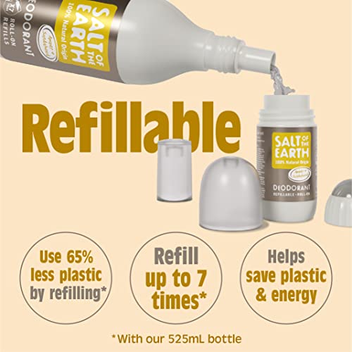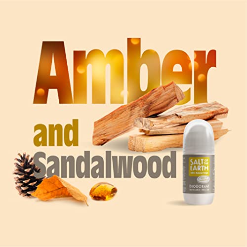 Salt of the Earth Refillable Natural Deodorant Roll On Amber & Sandalwood – Effective Protection, 100% Natural ingredients, Eco friendly, Vegan, Cruelty Free. Suitable for Women, Men & Kids – 75ml