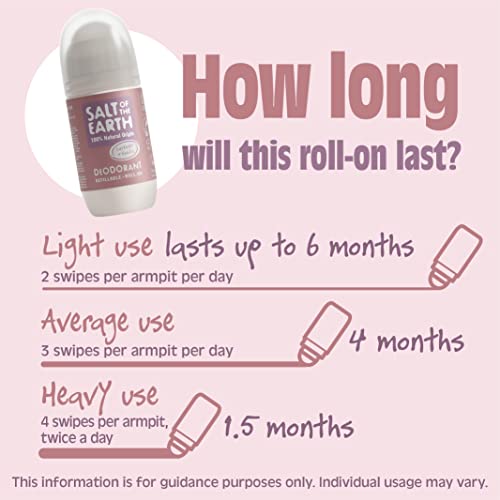 Salt Of the Earth Refillable Natural Deodorant Roll On Lavender & Vanilla – Effective Protection, 100% Natural Ingredients, Eco friendly, Vegan, Cruelty Free. Suitable for Women, Men & Kids – 75ml