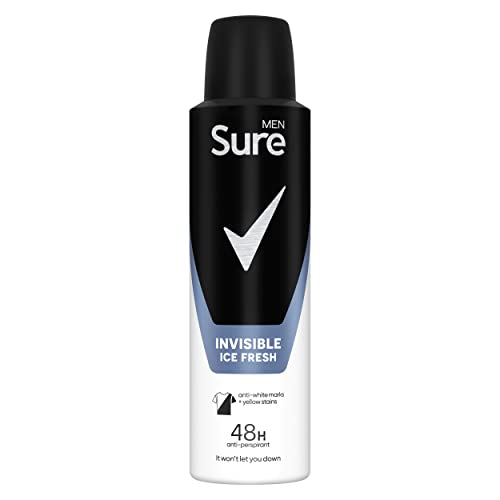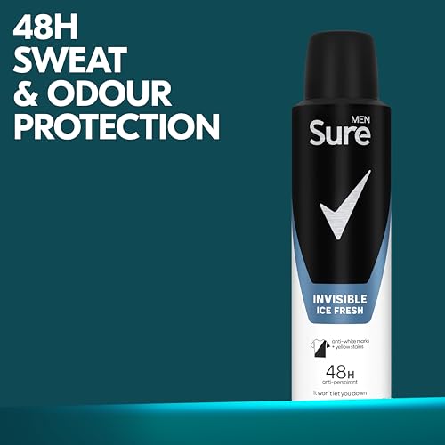 Sure Men Invisible Ice Fresh Anti-perspirant Aerosol 48h fresh and dry protection deodorant is available in various pack sizes, including a single 150 ml can and a 2x 150 ml twin pack.