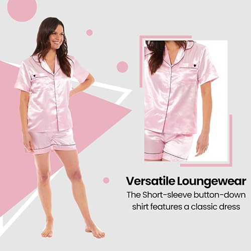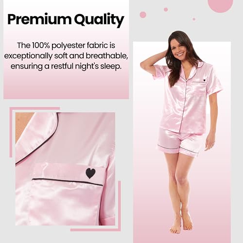 Daisy Dreamer Womens Short Pyjama Set Satin Silk Ladies Pyjamas Sets Button Down Easy Care Two Piece Comfy Sleepwear and Loungewear Pjs