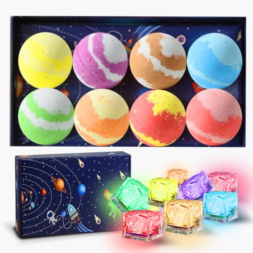 Bath Bombs for Kids for women with Toys Inside Surprise LED Light, 8PK Planets Kids Bath Bomb, Natural Organic Essential Oil Spa Gift Set for Women, Men, Girls, Boys, Birthday Party, Christmas.