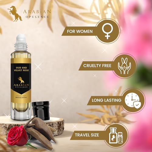 Arabian Opulence FR288 OUD AND VELVET ROSE Concentrated Perfume Oil | Amber Floral Alcohol-Free Roll on Bottle for Women | Long Lasting Oil Based Perfume (6ml)