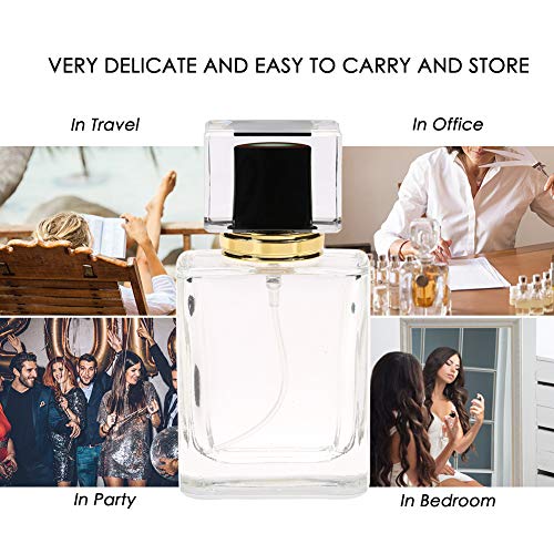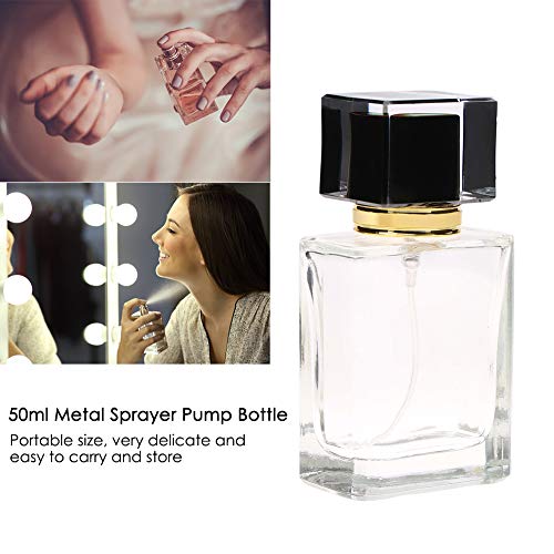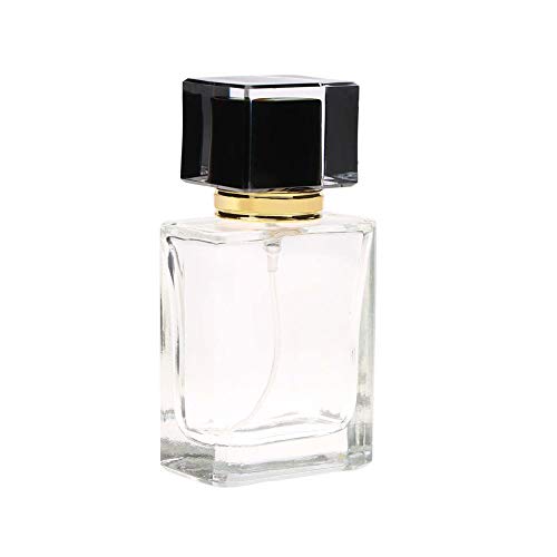 Glass Perfume Bottle, 50ml Empty Glass Perfume Spray Bottle Atomiser Refillable Transparent Square Perfume Spray Bottle Atomizer(black)