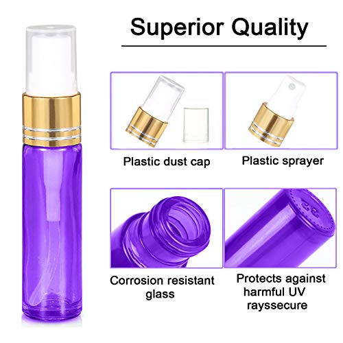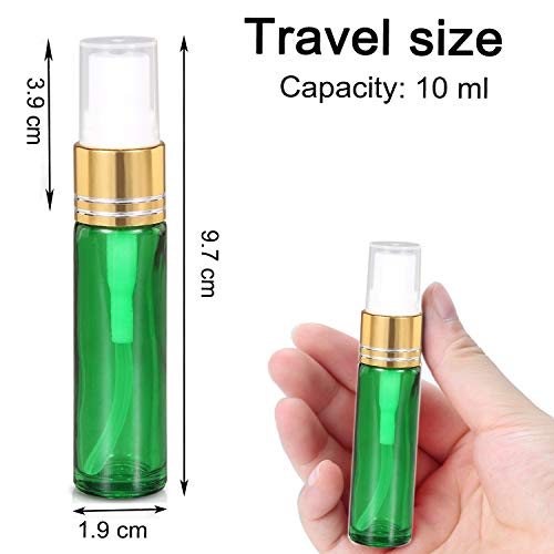 JamHooDirect 6Pcs 10ml Empty Glass Spray Bottles with Golden Fine Mist Sprayers, Travel Atomiser Refillable Portable Container Includes 2 Droppers for Essential Oils, Perfume or Night Out Fragrance