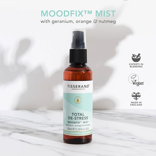 Tisserand Aromatherapy – Total De-Stress – MoodFix Mist – Orange, Geranium, Nutmeg – 100% Natural Pure Essential Oils – 100ml – Calming Mist Spray