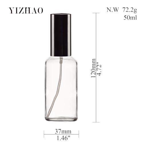 YIZHAO 50ml Clear Glass Spray Bottle for Essential Oils, Small Empty Fine Mist Spray Bottle, for Cleaning, Aromatherapy, Cosmetic Sprays, Hair –12 Pcs