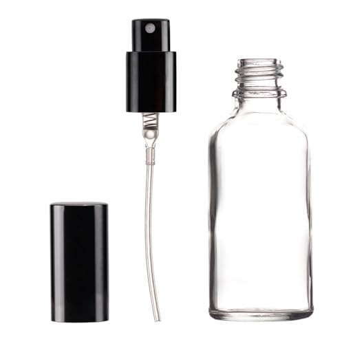YIZHAO 50ml Clear Glass Spray Bottles are perfect for essential oils, cleaning solutions, aromatherapy, and cosmetic sprays. This pack of 12 fine mist spray bottles is ideal for travelling or home use. Additionally, the sleek design and sturdy glass construction make them both stylish and durable.
