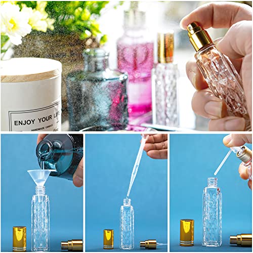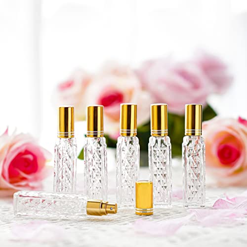 YU FENG 12pcs Glass Bottle Perfume Atomizer Refillable Spray Empty Perfume Bottles Fine Mist Atomizer Cosmetic Container for Travel,10ml, Gold-1