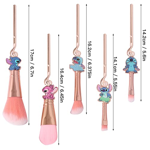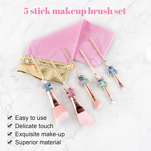 [5 Pcs] Stitch Makeup Brush Set Lilo and Stitch Gifts Cosmetic Brushes for Powder Eyeshadow Blushes Lips, Portable Kawaii Makeup Brush Set, Stitch Gifts for Girl Women