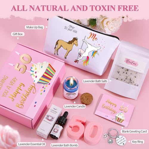 Bath Sets 50th Birthday Pamper Gifts for Women, Unique Skin Care 50th Birthday Hampers for Her, Funny Happy 50th Birthday Presents Gifts Ideas for Women Best Friend, Sister, Wife, Mum Bestie