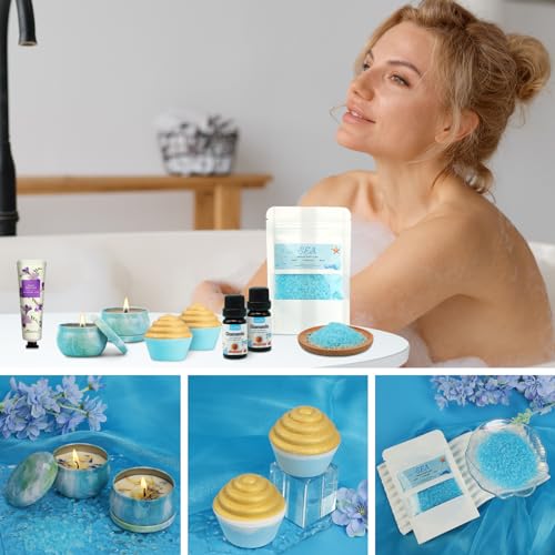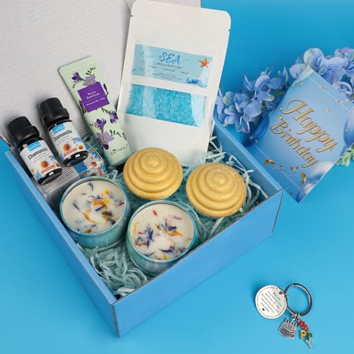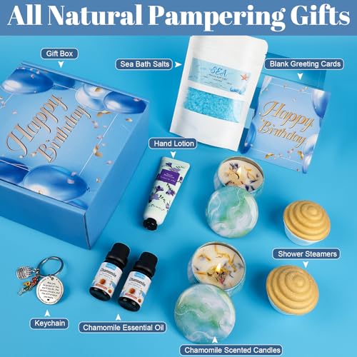 Chamomile Birthday Pamper Gifts for Women, Unique Self Care Kit Package Relaxation Spa Bath Gift Sets for Women, Lovely Ladies Hamper Pamper Gift Set for Friends, Colleagues, Mom, Sisters, Wife (Blue)