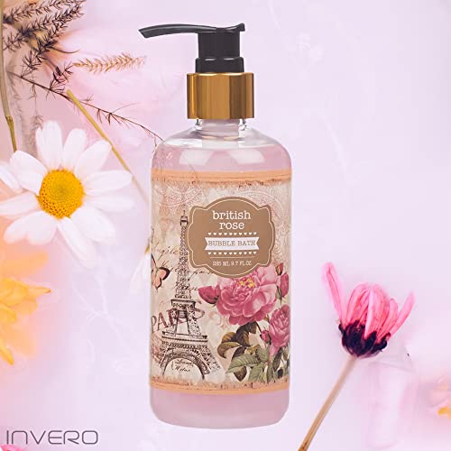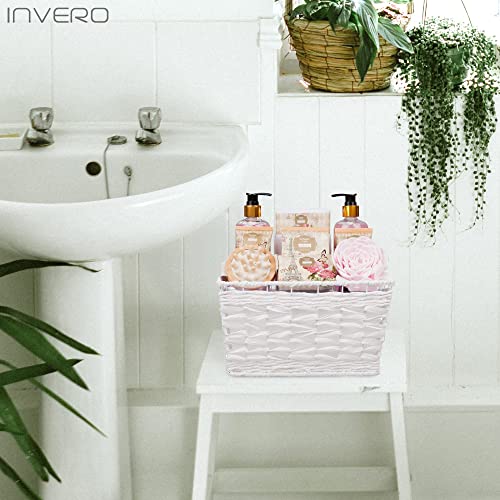 Invero 9 Piece Large Relaxing British Rose Body & Bath Spa Basket Gift Set – Includes all Bathing Essentials Complete with Large Basket and a Bow