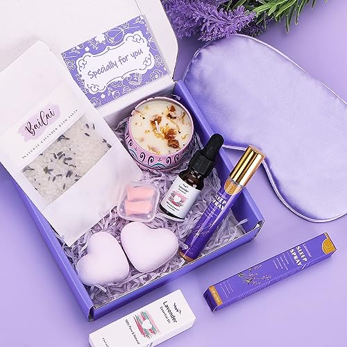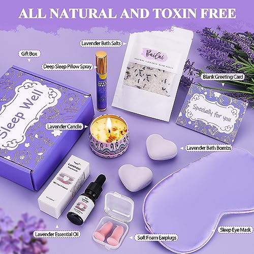 Lavender Bath Sets Sleep Well Pamper Gift for Women Birthday, Relaxing Skin Care Wellbeing Sleeping Gifts for Women Her, Stress Anxiety Relief Spa Set Get Well Soon Gifts Ideas for Best Friend Mum