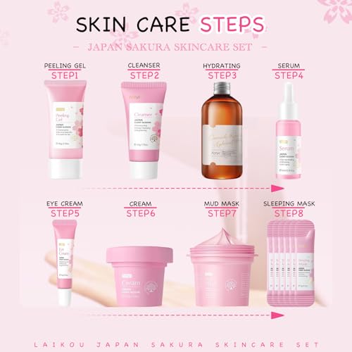 Leogony 13pcs Skincare Set for Teenagers Girls Kids, Cherry Blossom Gifts Skin Care Sets & Kits