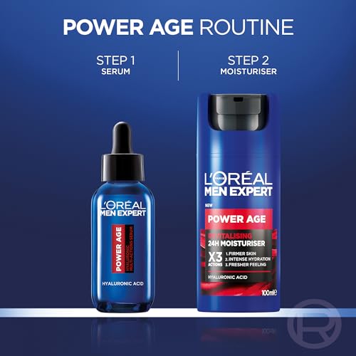 L’Oréal Paris Men Expert Power Bundle Gift Set for Men, Revitalising Moisturiser XL 100ml and Multi-action Serum 30ml, Power Age Duo With Hyaluronic Acid, for Dull and Dry Skin