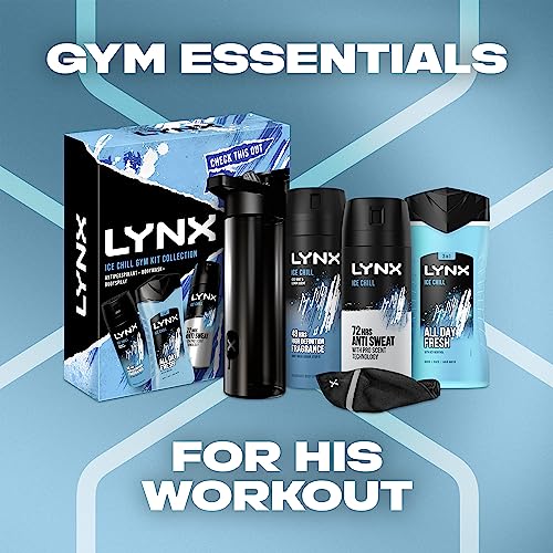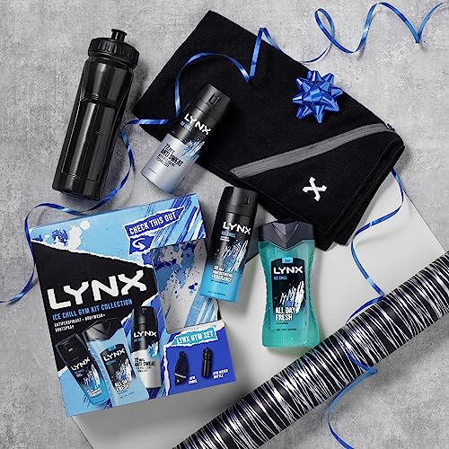 LYNX Ice Chill Gym Collection Deodorant Gift Set Water Bottle, Towel, Body Wash, Body Spray & Anti-Perspirant perfect for his daily routine 3 piece