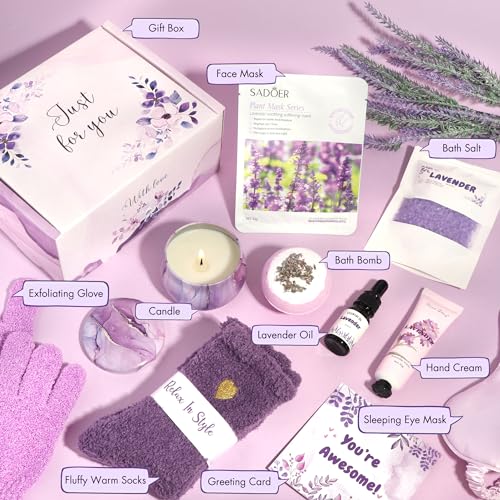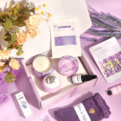 SABR Lavender Gift Set for Women (12 items) – Pamper Gifts for Women Birthday gifts for women Self Care Bath Sets gift for her Baby shower gifts leaving gifts Ladies gifts Thank you gifts for women