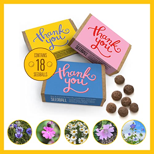 SEEDBALL Thank You Teacher Gifts Wildflower Seeds | 3X Seed Boxes with 6 Wild Flower Seed Balls Per Box | Bee Friendly British Wildflower Seed Bombs for Bees, Butterflies & Garden Wildlife