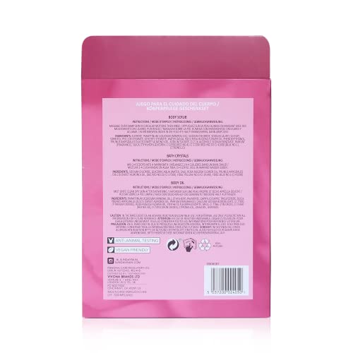 Sunday Rain Rose Fleur Trio, Cruelty Free & Vegan Pamper Gift Set with Body Scrub, Shimmer Body Oil and Bath Salts, 3 Piece