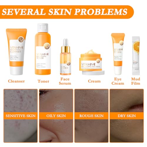 wimony Vitamin C Serum Skin Care Sets for Women Teenage Girls,Facial Kit,Includes Cleanser, Face Serum,Cream,Toner, Eye Cream,Frozen Film- Anti-Aging Daily Skin Care for All Skin Types(7 Pieces)