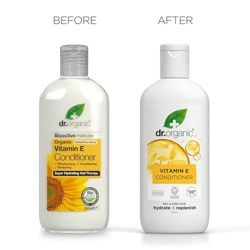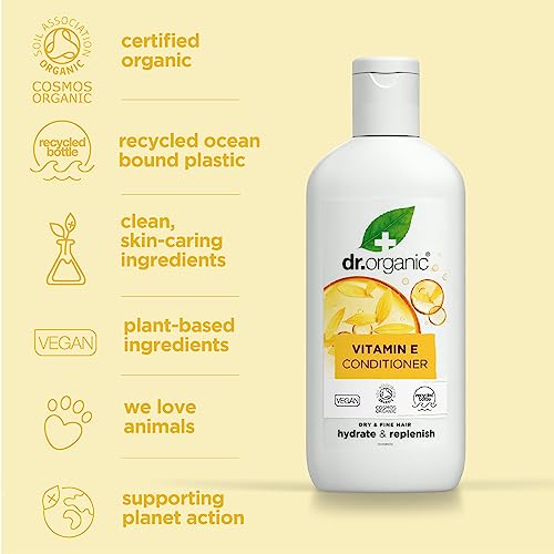 Dr Organic Vitamin E Conditioner, Hydrating, Dry & Fine Hair, Natural, Vegan, Cruelty-Free, Paraben & SLS-Free, Recyclable & Recycled Ocean Bound Plastic, Certified Organic, 265ml, Packaging may vary