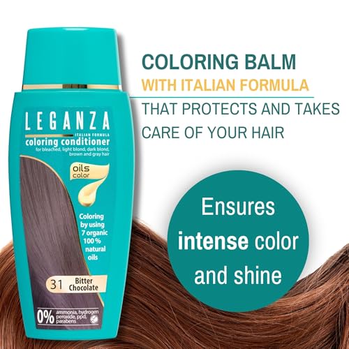 Leganza Hair Coloring Conditioner Natural Balm Color Bitter Chocolate Nº 31 | Enriched with 7 Natural Oils | Ammonia, PPD and Paraben Free | 150 ml