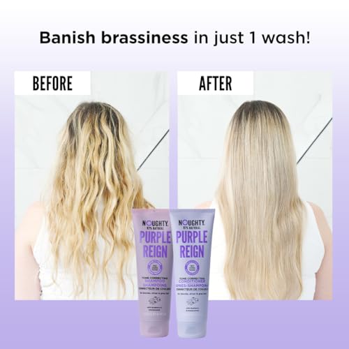 Noughty 97% Natural Purple Reign Tone Correcting Conditioner for Blonde, Grey or Silver Hair to Banish Brassy Tones with Blueberry and Blackcurrant, Sulphate Free Vegan Haircare, 250ml