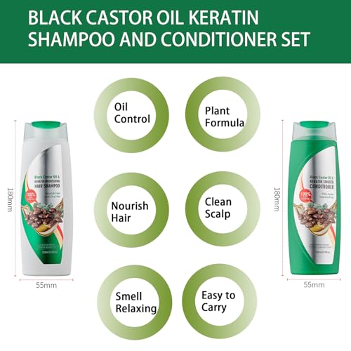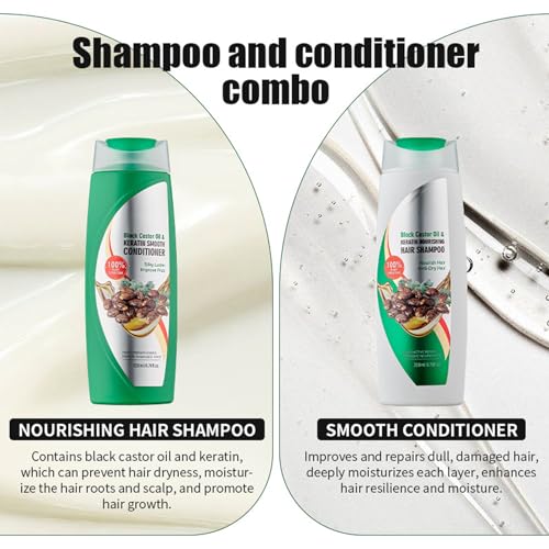 Shampoo and Conditioner Set,Black Castor Oil Keratin for Hair Care Set,Moisturizing Strengthening Shampoo,Soften & Nourishment Natural Brightness,Hair Growth Set for Men and Women