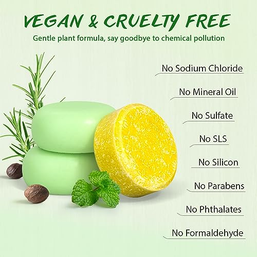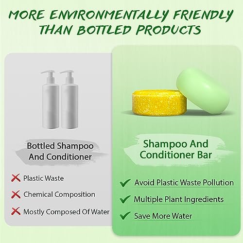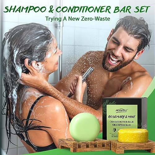 Shampoo Bar Conditioner Bar Set, Rosemary Mint Shampoo Conditioner Soap, Moisturizing Cleansing Zero Waste Solid Soap, for Straight Curly Oily Dry Hair, 2x80g Soaps and 2pcs Wooden Holder