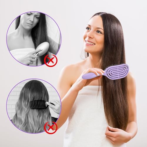 Flexible Soft Pin Bristle Hair Brush, Detangling Wet & Dry Hair Brush, Gentle Spiral Brushes for Women Men kids, Comfortable Vented Detangle Brush, Anti Static Hairbrush For All Hair Types (Blue)