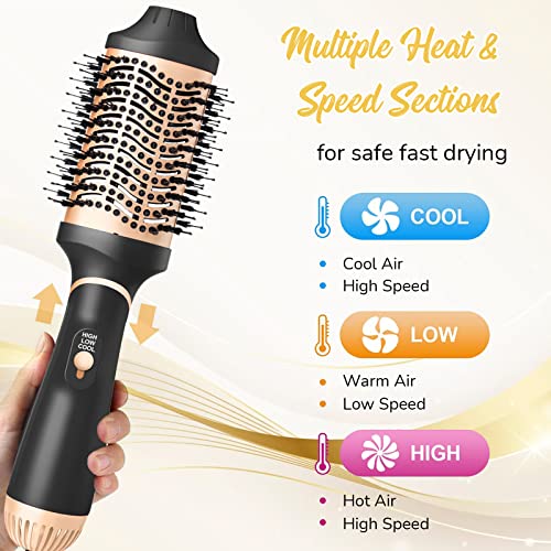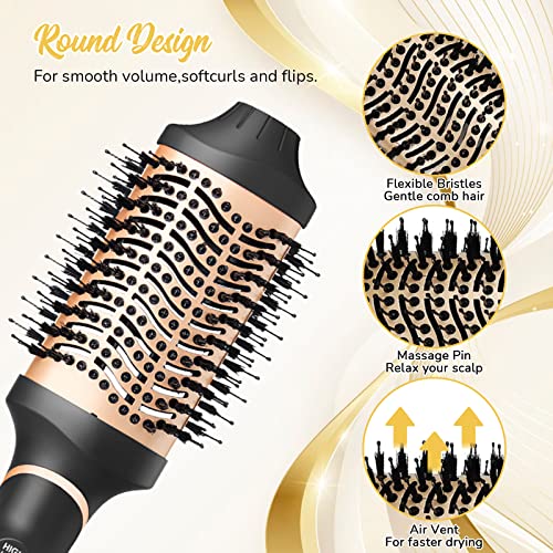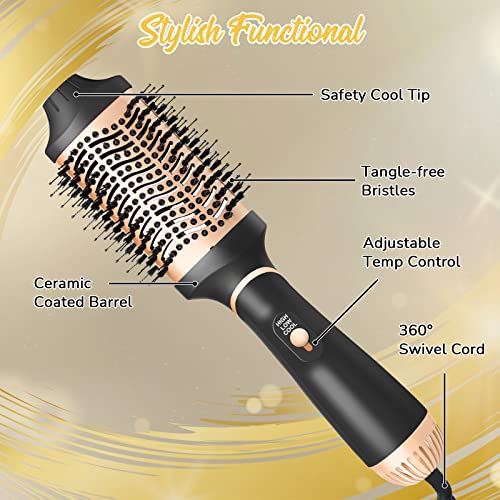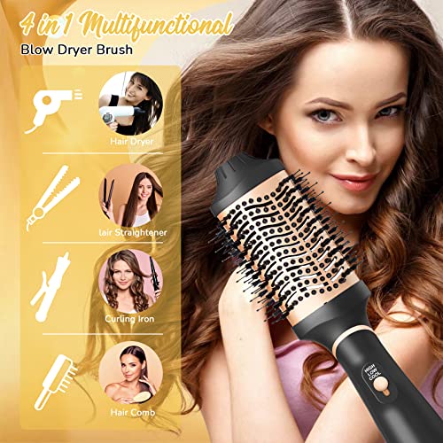 4 in1Hair Dryer Brush, Multifunctional Hot Air Styling Brush, One Step HairDryer Brush, Volumizer Hot Air Brush, Professional Salon Blow Dryer Brush for Hair Straightening, Curling, and Drying (GOLD)