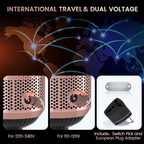 Dual Voltage Hair Dryer Brush, PRITECH Hot Air Brush 110V-120V/220V-240V Ionic 1000W Blow Dryer Brush 4 in 1 Styler, One Step Volumizer,Styling Brush for Straight and Curling Hair Salon