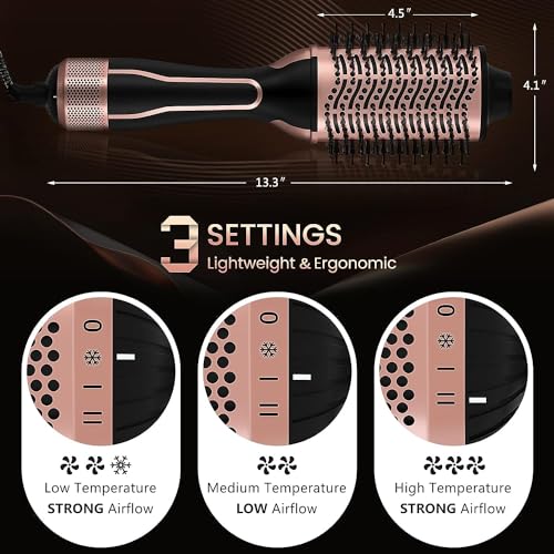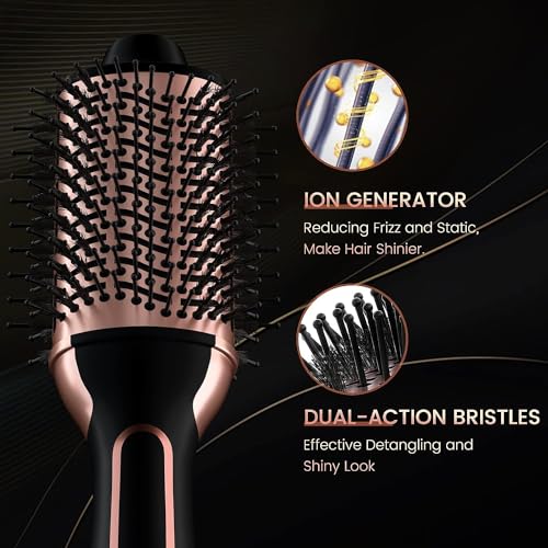 Achieve professional salon results effortlessly with the ‘Dual Voltage Hair Dryer Brush, PRITECH Hot Air Brush 110V-120V/220V-240V Ionic 1000W Blow Dryer Brush 4 in 1 Styler’. This innovative hair styling tool offers comprehensive care for your hair, featuring ionic technology to minimise frizz and maximise shine, ensuring a smooth, voluminous finish each time.