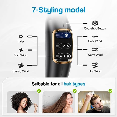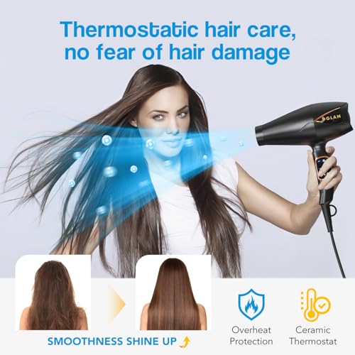 GLAM Hair Dryer, Professional Ionic Hairdryer, Powerful AC Motor Quick Drying Salon with 3 Heat Setting 2 Speed, Cool Button, with Diffuser, Nozzle, Concentrator Comb for Women Man