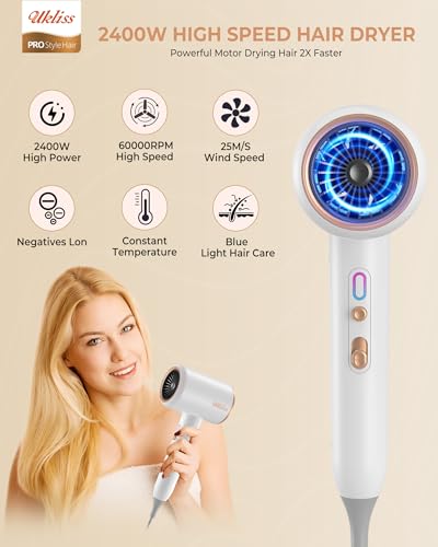 Hair Dryer 2400W Hairdryer with 60000 RPM Powerful AC Motor, Hairdryer with Diffuser & Concentrator, Blow Dryer with 2 Speed 3 Heat Setting, Cool Shot Button, Hair Dryer for Women Men
