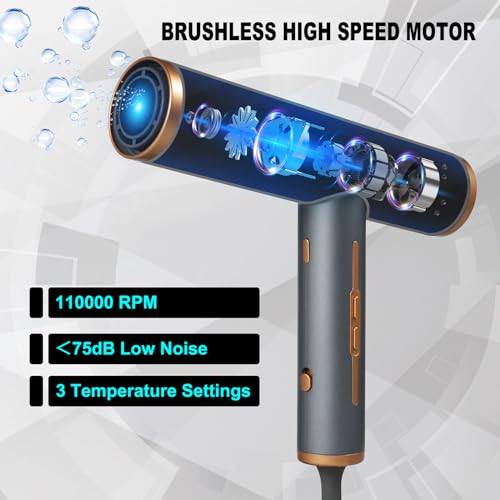 Layhou Hair Dryer, 110000rpm High Speed Negative Ion Hairdryer, Professional Fast Drying Travel Hairdryer for Women with 3 Speeds 3 Heat Settings Led Display for Home and Salon Use