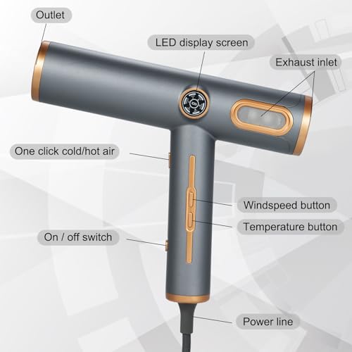 Layhou Hair Dryer, 110000rpm High Speed Negative Ion Hairdryer, Professional Fast Drying Travel Hairdryer for Women with 3 Speeds 3 Heat Settings and an LED Display is the ultimate grooming tool for both home and salon use. Its advanced technology guarantees swift and efficient drying, making it perfect for travel with its compact design and powerful performance. Experience silky smooth hair every time with this high-speed, negative ion hairdryer, featuring three functional speed and heat settings.