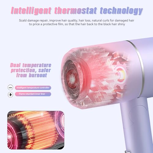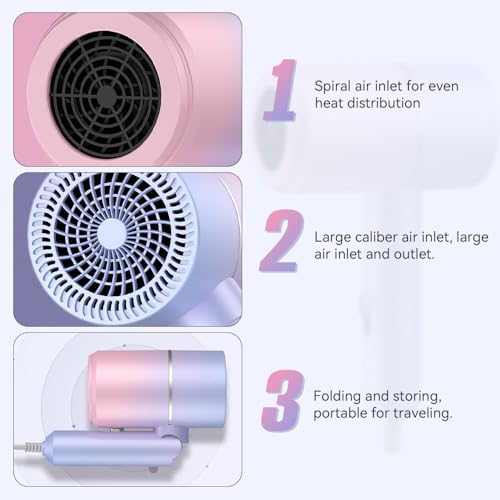 LUFEIS Professional Hair Dryer, Foldable Quick Drying Ionic Hairdryer with Concentrator, Portable Travel Hairdryer with Heating and Cool Button for Multi Women Man Hairstyles, for Home Salon Travel