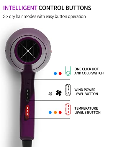Professional Hair Dryer 2400W Powerful AC Motor Blue Light Ionic Hairdryer with 1 Diffuser & 2 Nozzles, 2 Speeds 3 Heat Settings, Cool Shot for Women Men Home Salon offers salon-quality results with its advanced ionic technology. This hairdryer not only reduces frizz but also promotes healthier, shinier hair. It features 2 speeds, 3 heat settings, and a cool shot function, catering to all hair types. Accessories include a diffuser and two concentrator nozzles, ideal for creating various styles.