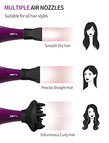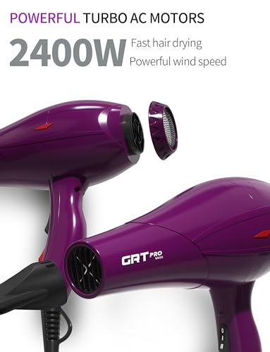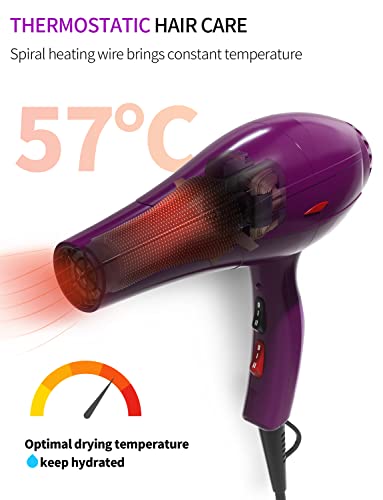 Professional Hair Dryer 2400W Powerful AC Motor Blue Light Ionic Hairdryer with 1 Diffuser & 2 Nozzles,2 Speeds 3 Heat Settings, Cool Shot for Women Men Home Salon
