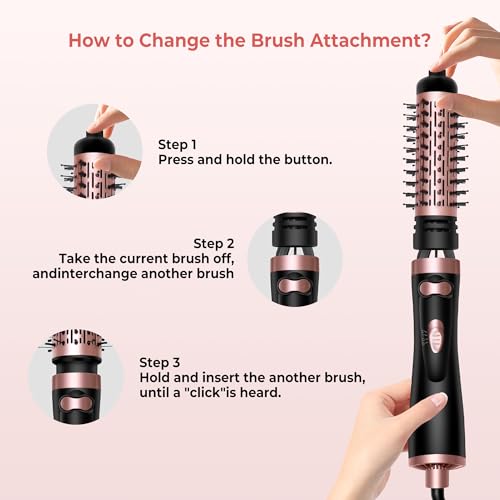 Rotating Hair Dryer Brush, 3-in-1 Hair Dryer Brush, 360° Rotating Hot Air Brush, Hot Air Brush Set with 2 Brushes,Rotating Hair Styler Ionic Blow Volumizer, for Dry Hair,Curl Hair,Straighten Hair